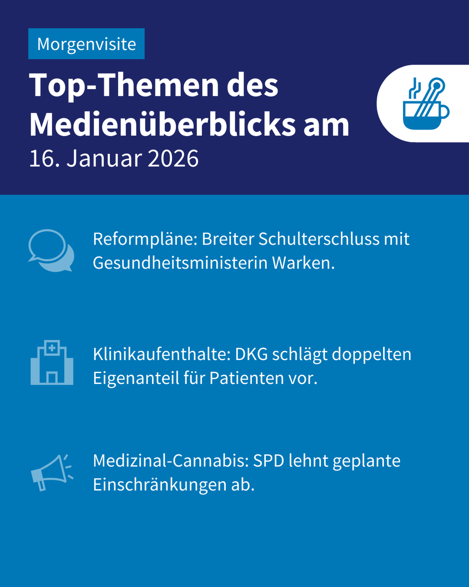 Arbeitgeber, Ärzteverbände, Kassen und #Pflege unterstützen weite Teile der von Gesundheitsministerin @ninawarken geplanten Reformen. Außerdem in der #Morgenvisite ☕️: Debatte um Pflegebudget geht weiter und SPD-Absage an Cannabis-Einschränkungen. ➡️ t.co/Jrr7yhrfL6t.co/TzMyUyIohyt.co/agqRGdLL2H"