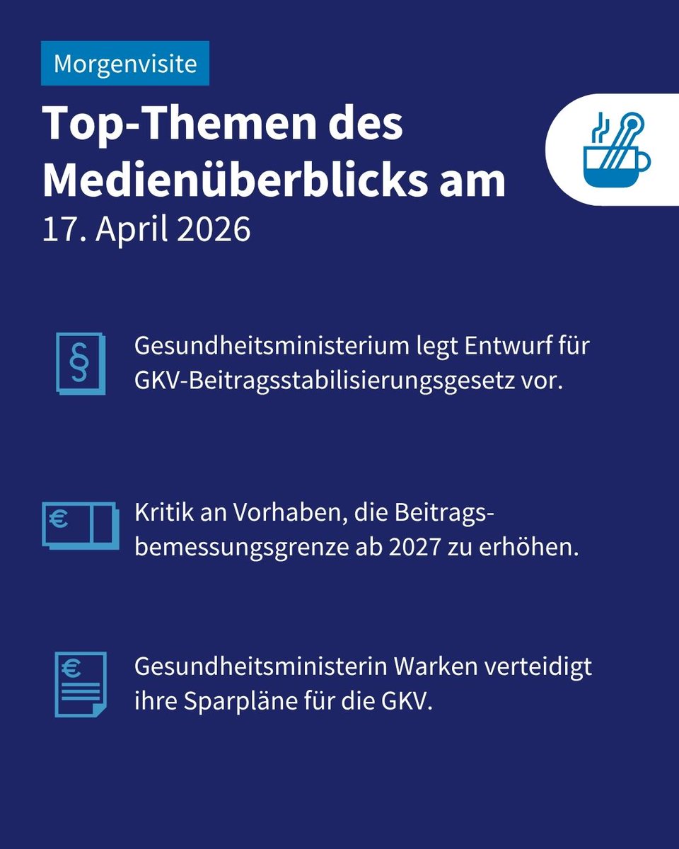 Nach der Vorstellung der #GKV-Sparpläne von Gesundheitsministerin Warken wächst die Kritik - auch in den eigenen Reihen. Außerdem in der #Morgenvisite ☕️: Reform-Effekt könnte sich bei Familienversicherung halbieren und Nutzung der ePA zieht weiter an. ➡️ t.co/ItEkzIckYqt.co/Ge6deBpkbDt.co/nP8tQMb6Vc"
